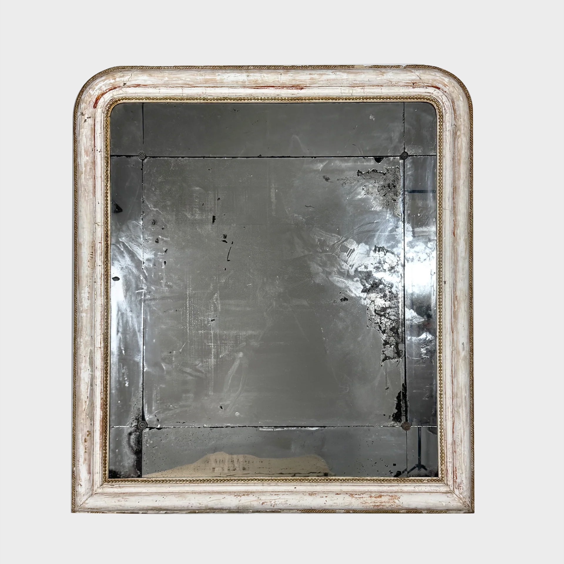 A beautifully distressed 19thC French mirror with unusual sectional glass
