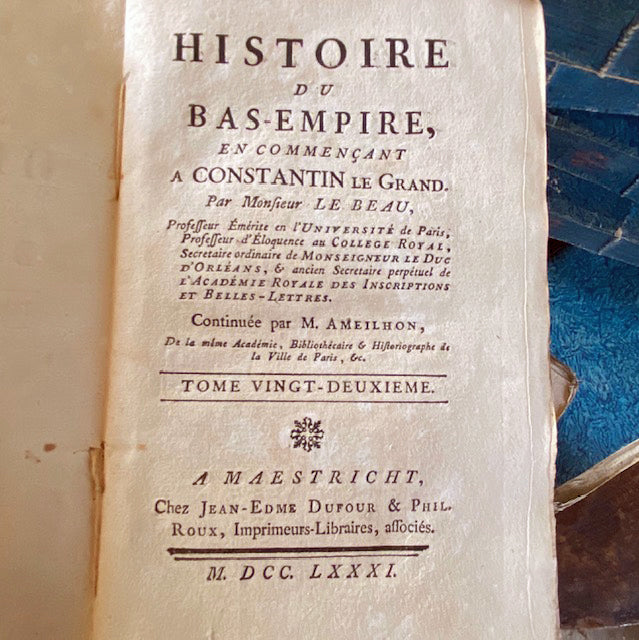 A very decorative set of blue French books dating to 1781