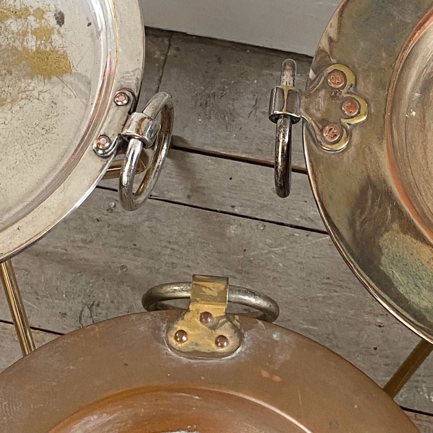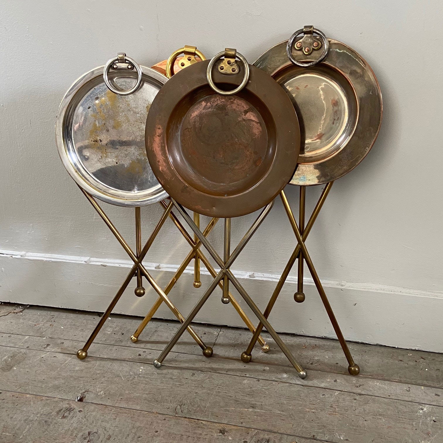 A selection of useful folding tables in brass, copper and chrome. Four available