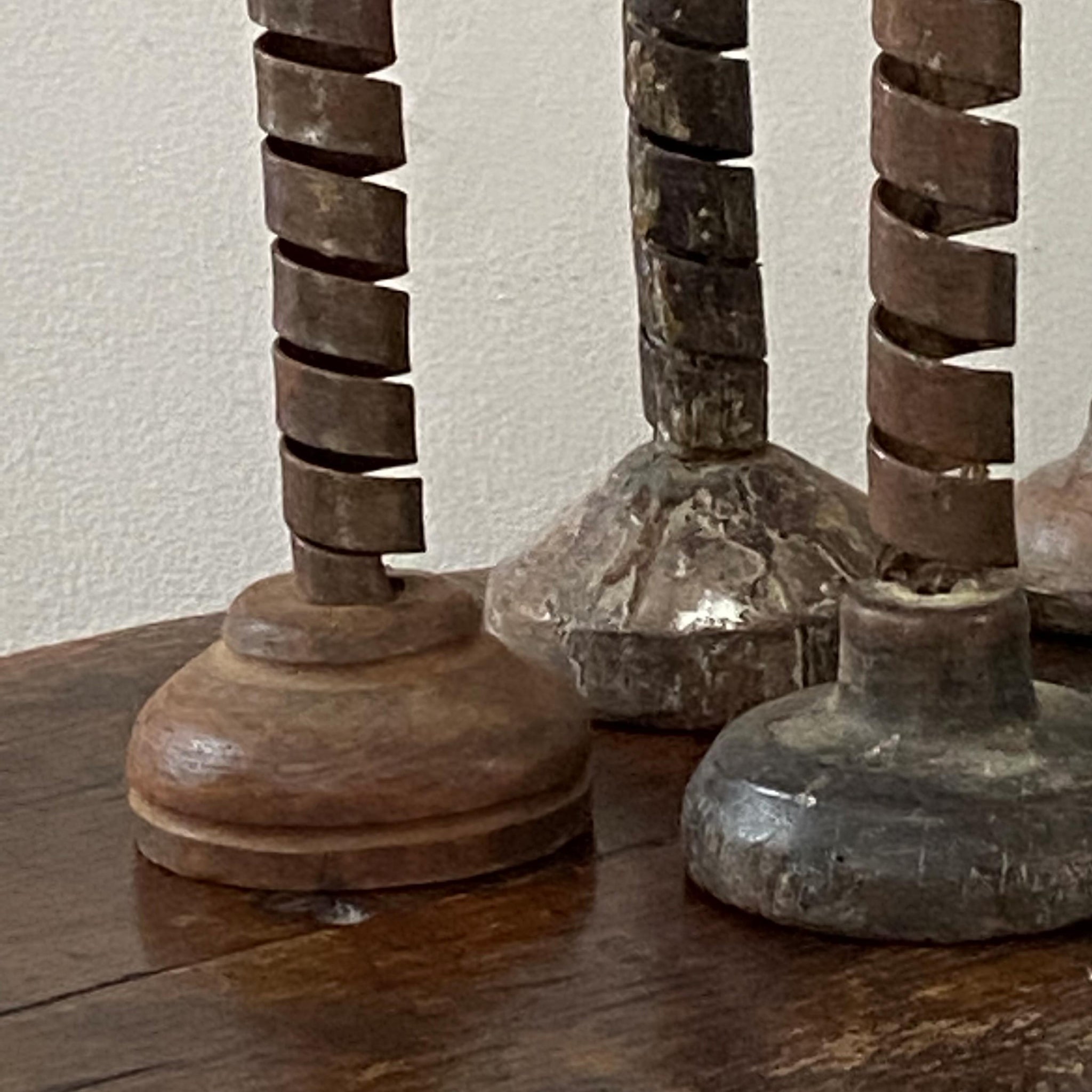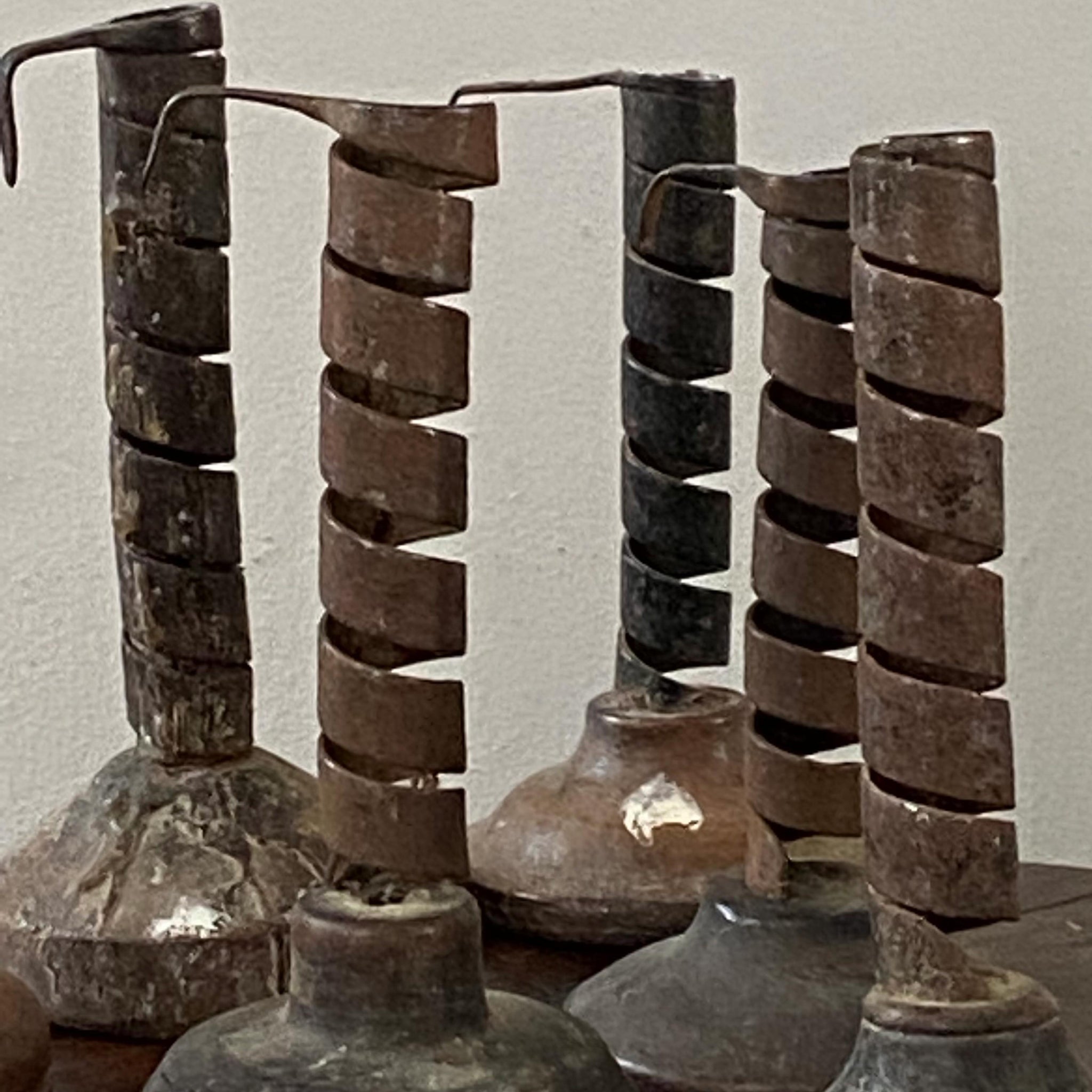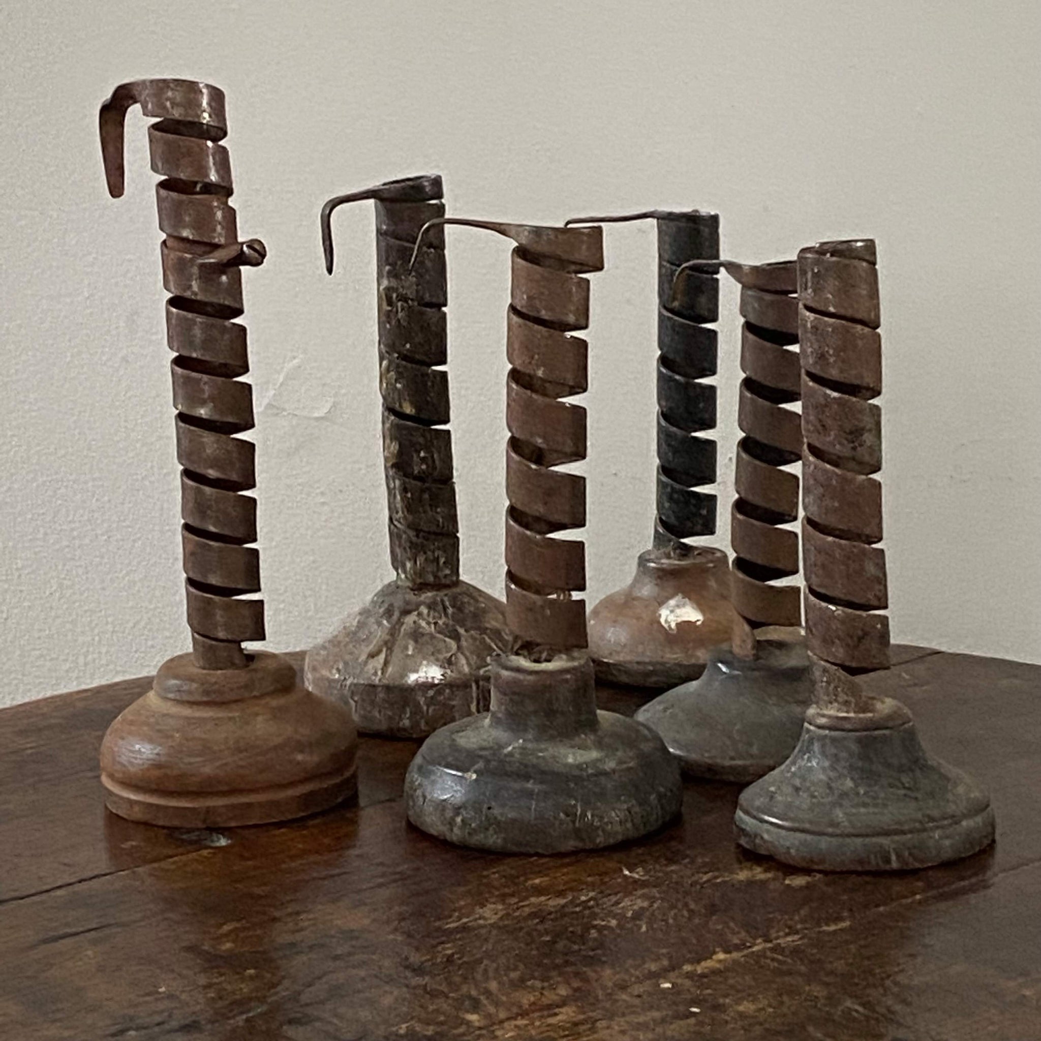 A collection of 6 early Rat de Cave candleholders