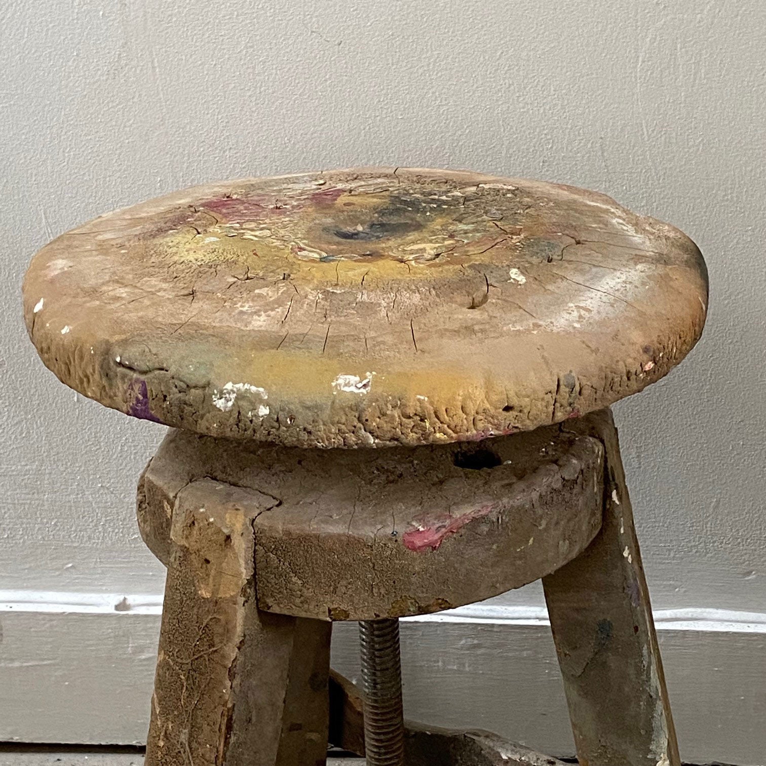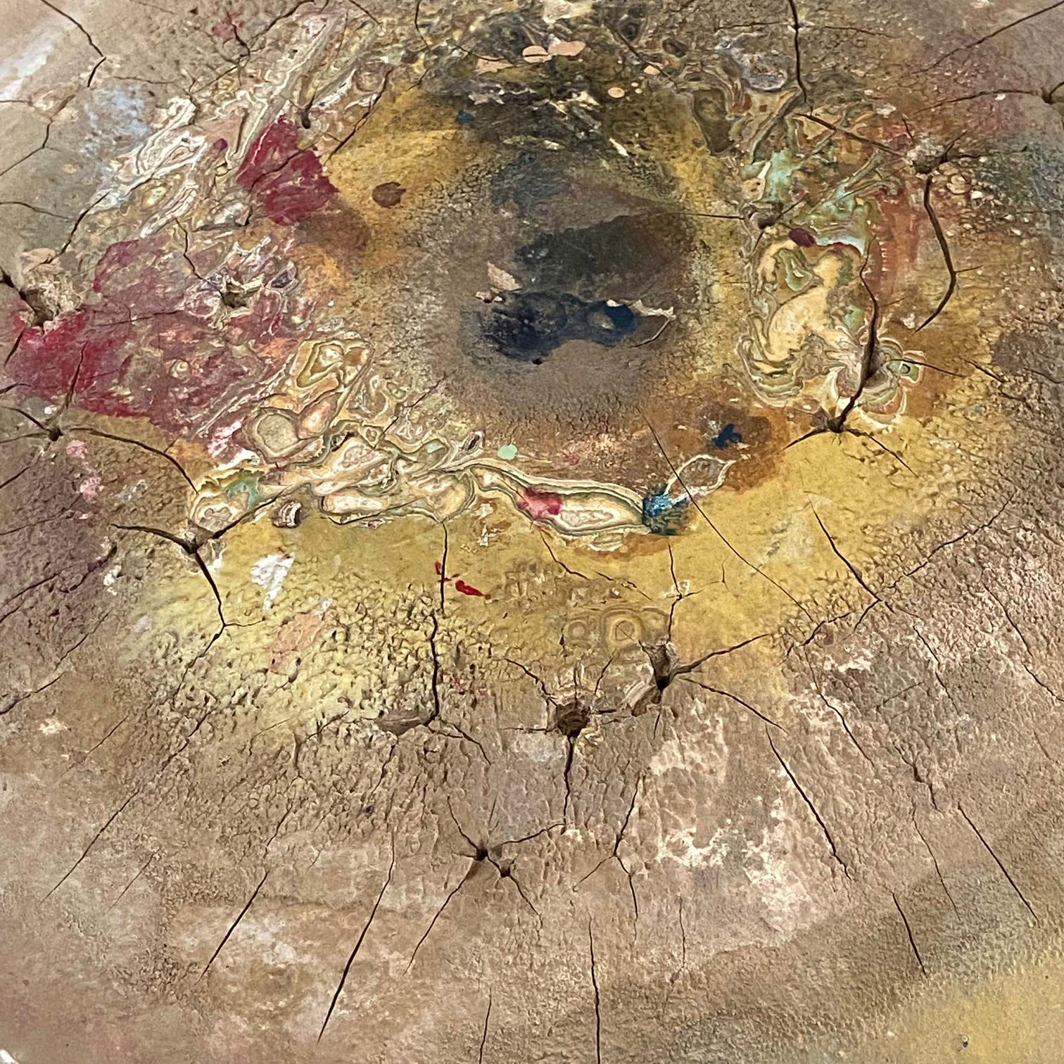 A wonderfully atmospheric sculpture stand with plenty of bright paint spatters