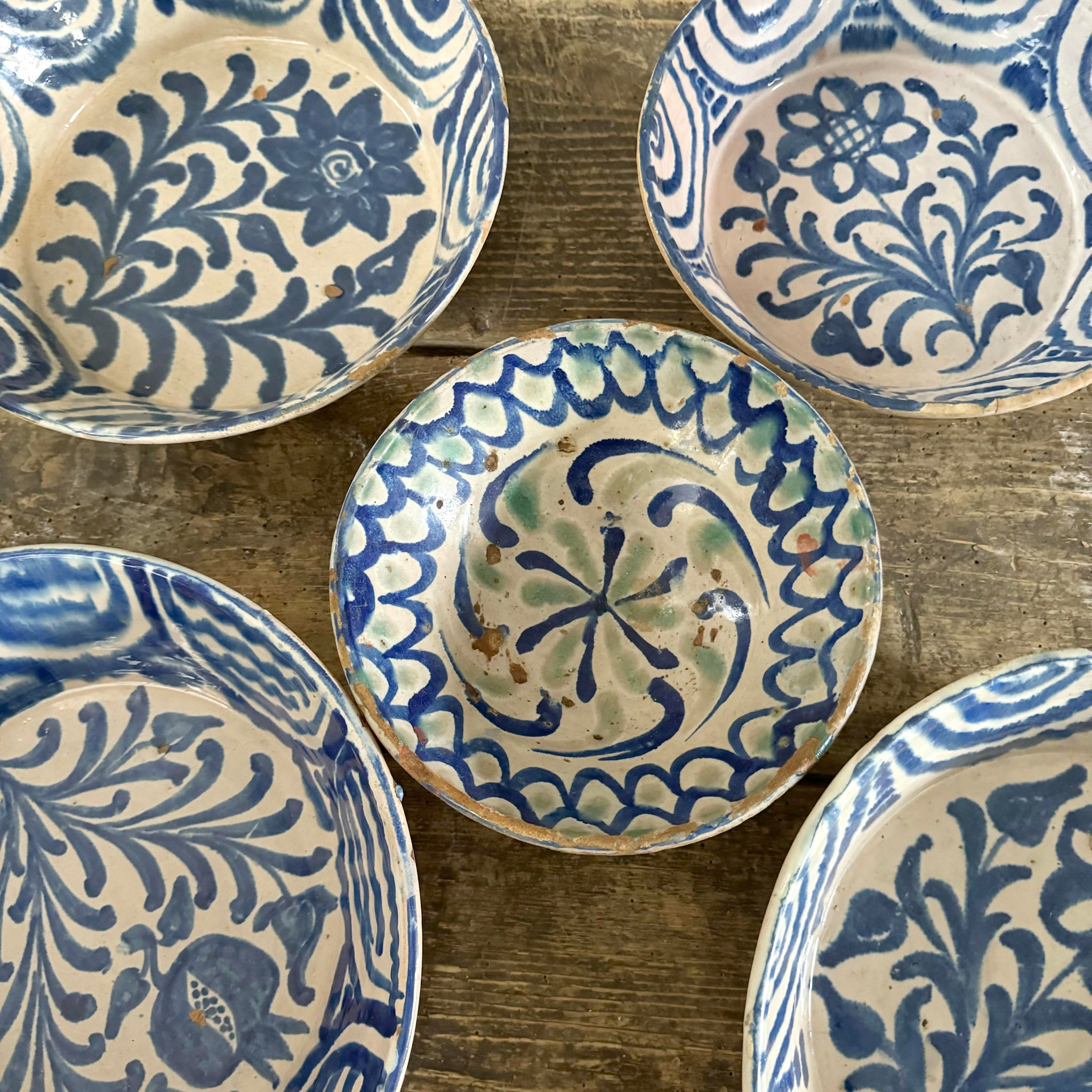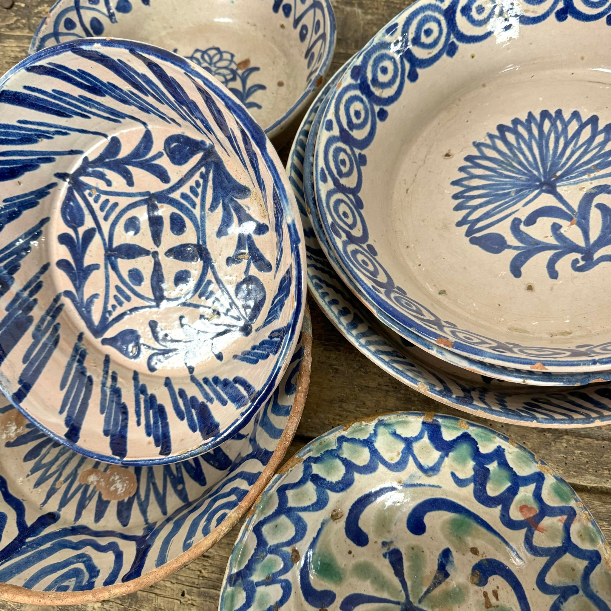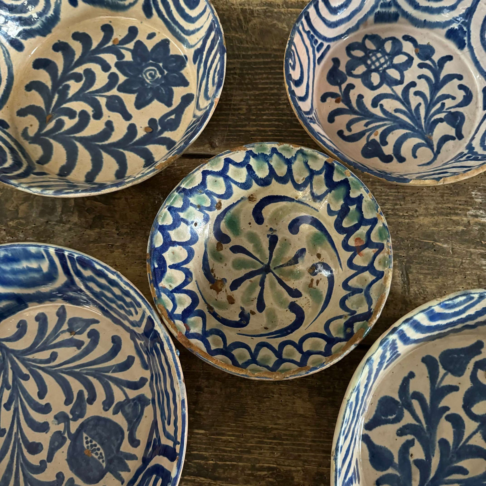 A collection of traditional Spanish Fajalauza bowls from Granada.