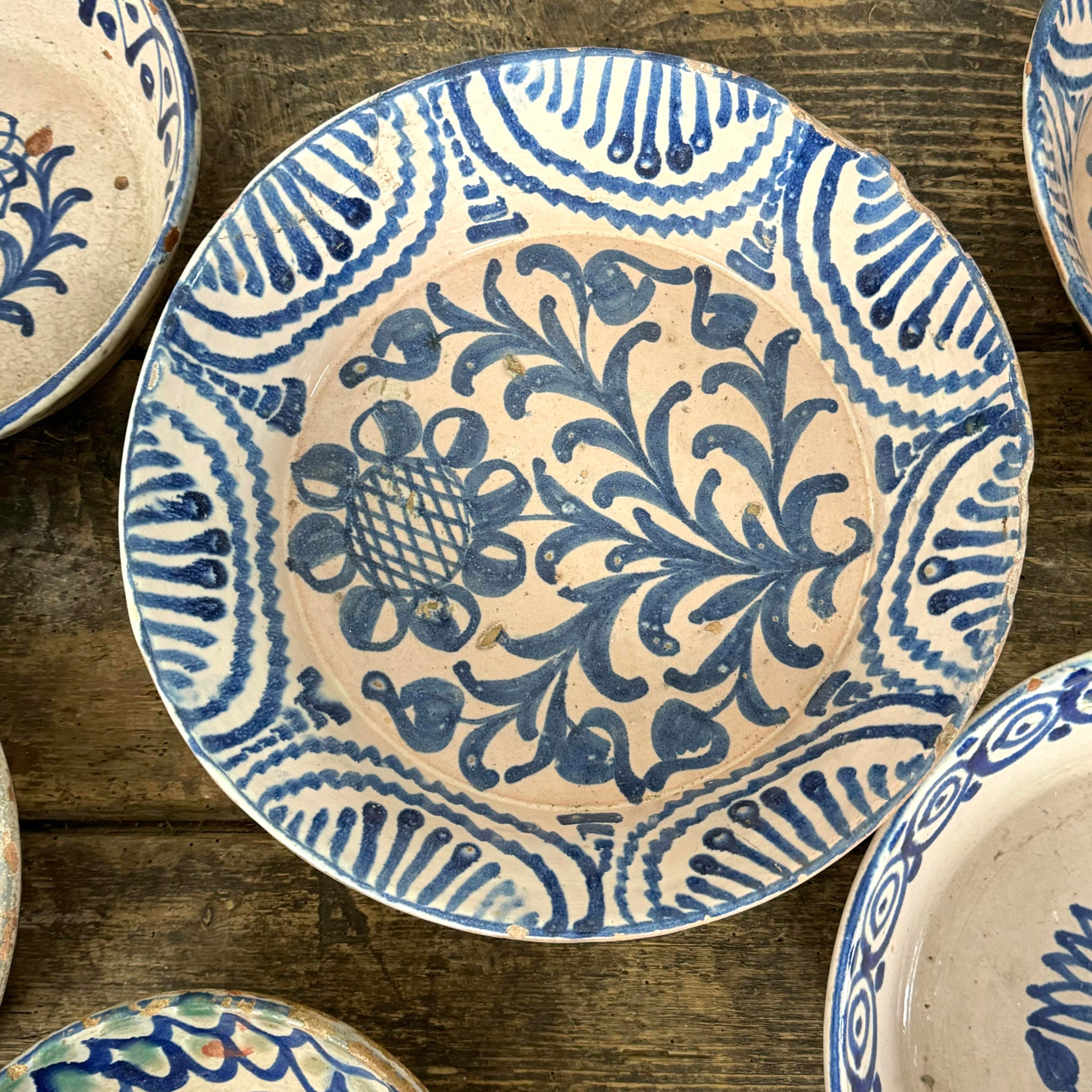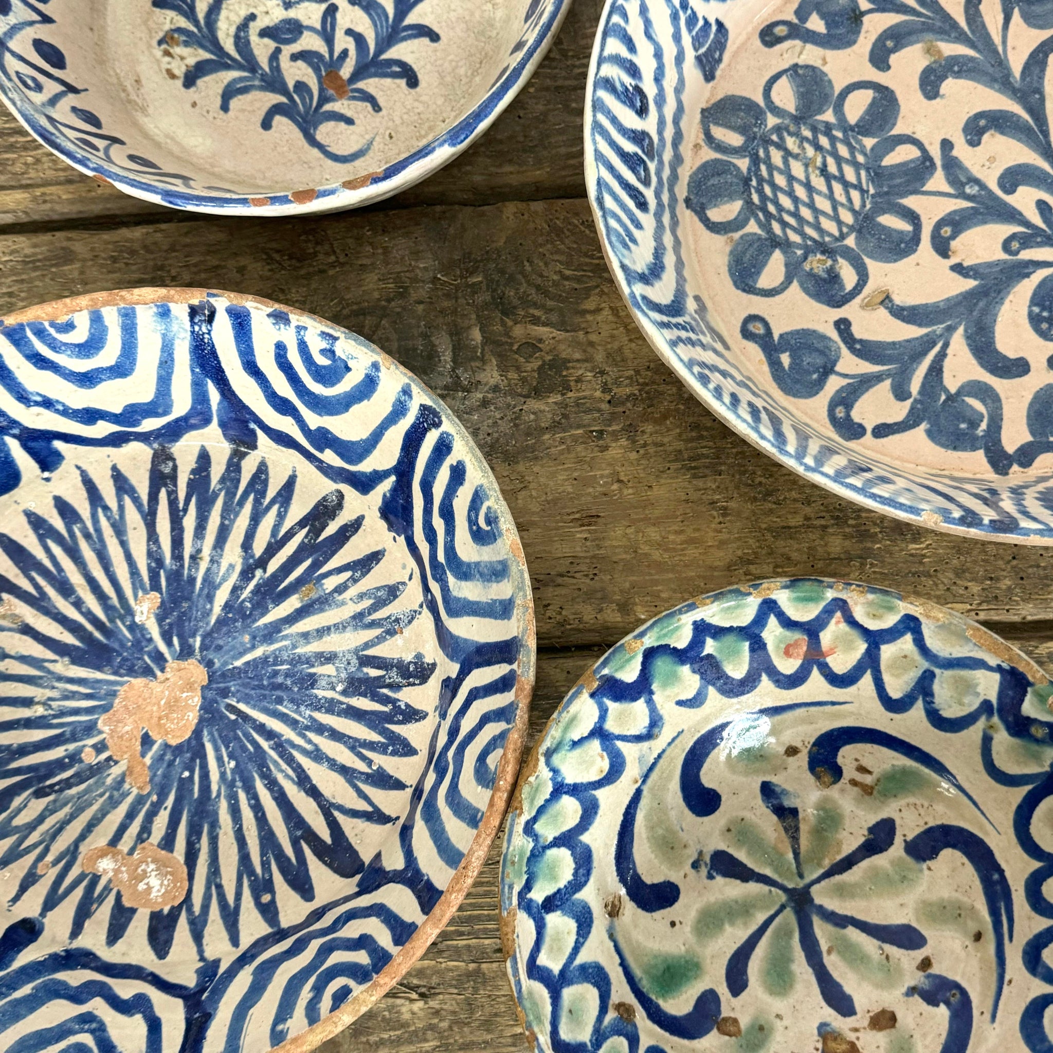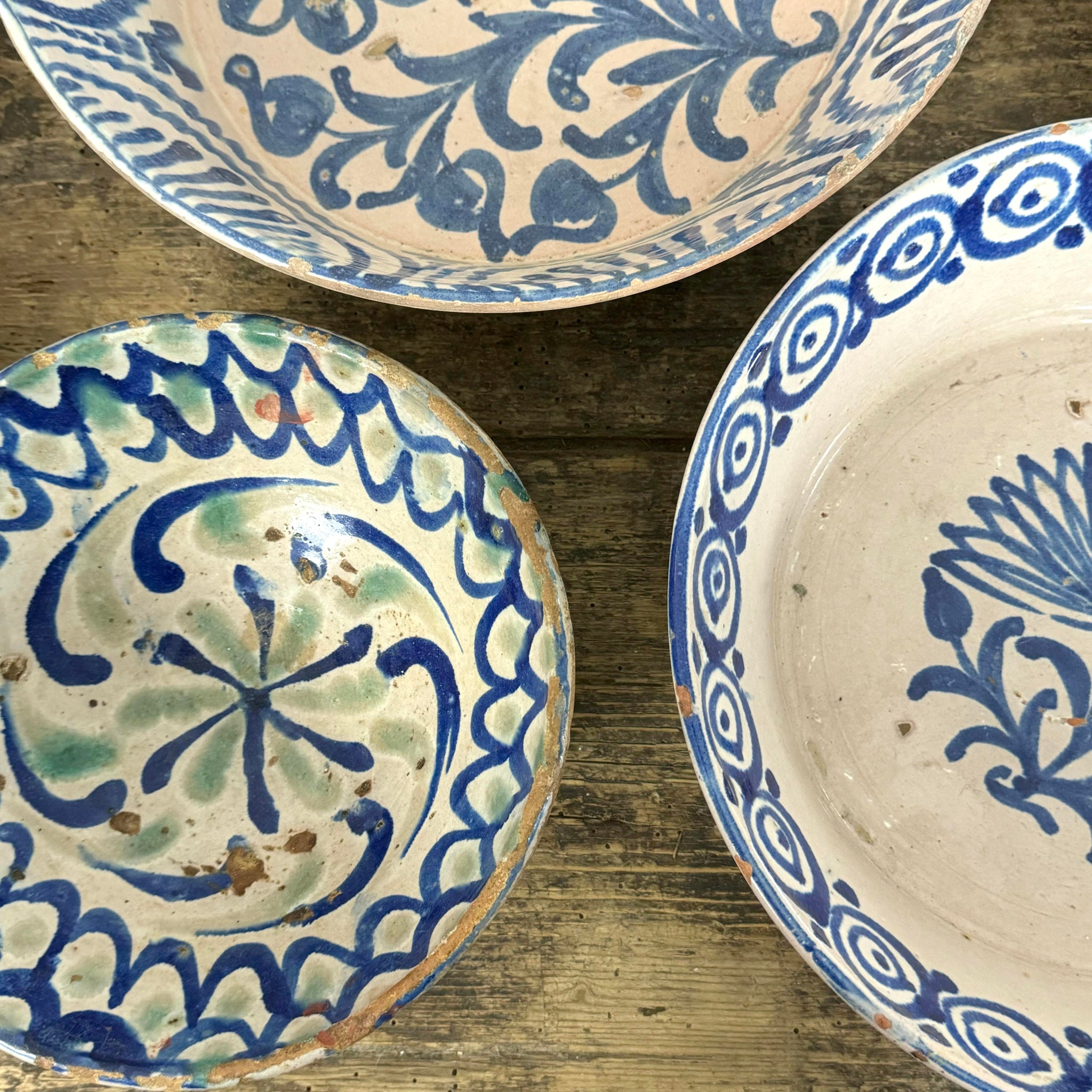 A collection of traditional Spanish Fajalauza bowls from Granada.