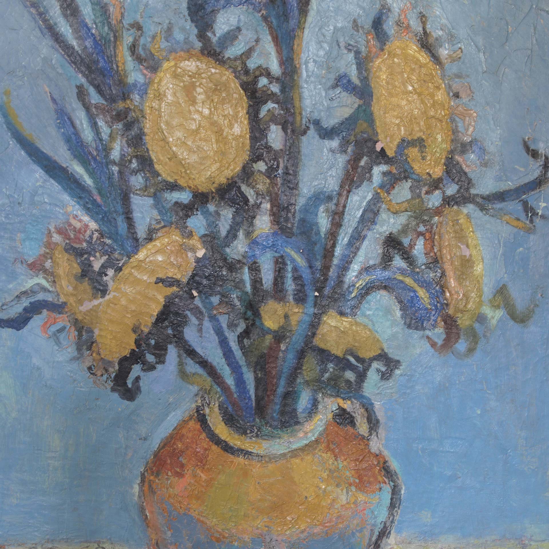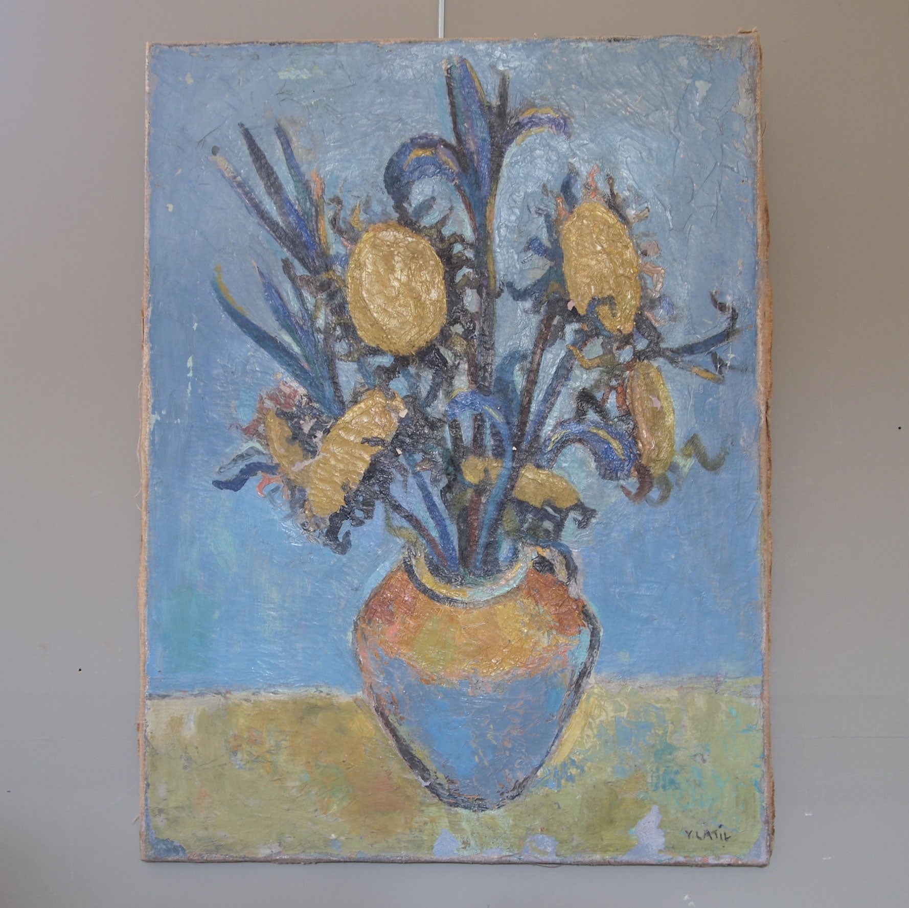 A charmingly naive painting of sunflowers in the manner of Van Gogh!