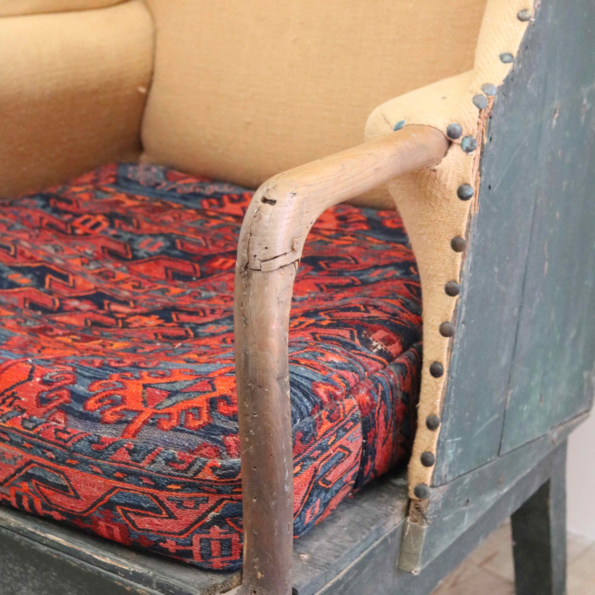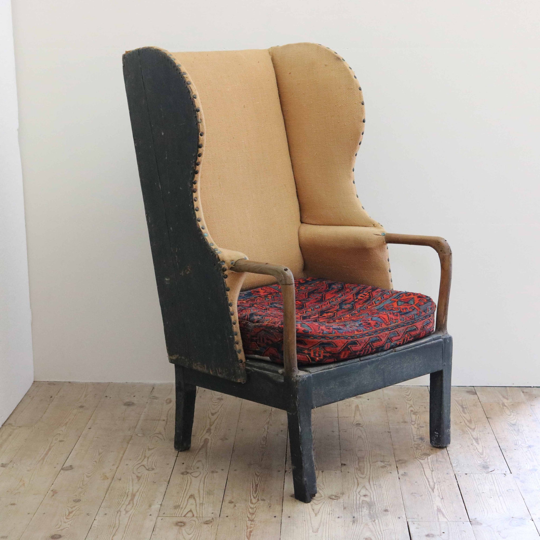 A handsome and sculptural primitive plank wing armchair Late 18thC.